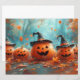 Eenmaal bij een herfstschemering in het slaperige gehucht Ember Hollow wachtte een eigenaardig gezicht op iedereen die het waagde om in de buurt van het oude Bentley-boerderij te dwalen. Daar, op een open plek, gekust door de ondergaande zon, zaten vier pompoenen, elk gekroond met een gescheurd pet van een heks. In tegenstelling tot de vrolijke jack-o'-lantaarns die de veranda's van naburige huizen sieren, droegen deze pompoenen een sfeer van plechtigheid, hun gebeeldhouwde gezichten geëtst met runen van oud. Toen het gordijn van de nacht dichterbij kwam, begon er een zachte gloed van binnenuit te stralen, die een griezelig licht op de gevallen bladeren wierp. Whispers onder de stedelingen spraken over de Bentley-heksen, vier zussen van grote macht die eeuwen geleden op een Halloween-avond verdwenen, en alleen hun betoverde petten achterlieten. Elk jaar, als de grens tussen de werelden dun werd, ontwaakten de pompoenen, en voor een enkele nacht keerden de zusters terug, niet in vlees, maar in geest, om over Ember Hollow te waken. Hun stille wake was een pact met het ongeziene, het verzekeren van vrede en bescherming tegen de geesten die vrij rondzwierven tijdens het Halloween-tij. En zo werden de Heksenpompoenen van Ember Hollow een legende, een verhaal om de botten te koelen en het hart te verwarmen, en het herinnerde eraan dat magie inderdaad op All Hallows Eve op gang was. plakboek papier halloween, pompoen halloween scarpbook papier,