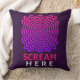 Scream in style. This vibrant throw pillow makes a bold statement with pulsating pink and purple ripple waves and loud “SCREAM HERE” text in bright pink. It's the perfect blend of humor, stress relief, and eye-catching design.