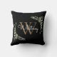 Script Groene Bloemen Zwart Goud Initiaal Monogram Kussen