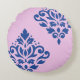 Scroll Damask Art I Blauw op Roze Rond Kussen
