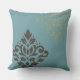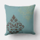 Scroll Damask Art I Bruin Goud (lijn) Blauwgroen Kussen