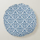 Scroll Damask Ptn DK Blauw op Wit Rond Kussen
