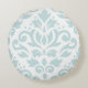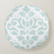 Scroll Damask XLg Ptn Lt Duck Egg Blue op Wit Rond Kussen