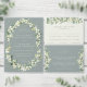 Een blauw-groene bruiloft repetitie diner uitnodiging, voor als de evenement(en) allemaal zijn gevestigd op dezelfde locatie. Met een krans van handgeschilderde sneeuwbessen en eucalyptus. Alle tekst is volledig bewerkbaar en de verspreide stippen aan de voor- en achterkant kunnen worden verwijderd voordat u bestelt, als u dat wilt. Uitzicht dit Collectie in mijn winkel voor andere bloemstukken, andere kleuren en voor het coördineren van items.