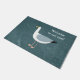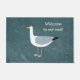Een juktige zeemeeuw die bij de oceaan staat. Ideaal voor mensen die van vogels houden en voor de kust. De tekst leest Onthaal aan Onze Nest, maar kan worden aangepast of worden verwijderd.