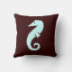 deel van de oceaan thema decor SEAHORSE blauw op bruin kussen