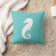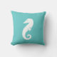 SEAHORSE WHITE op blauwgroen blauwe kussen