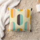 A seamless geometric pattern features vertical, oval shapes in soft yellow, teal, peach, orange, and brown, creating a retro, playful vibe.