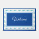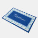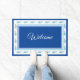 Deze deurmat, die in de grote maat wordt getoond, maakt deel uit van het "Seaside"-collectie en heeft leuke zeepaardjes in Blue/Green rondom de randen van de deurmat. In Royal Blue heeft deze mat coördinerende strepen van Sky Blue, Cornflower Blue en White. Welkom geschreven in fancy schrift in het centrum. Pas dit ontwerp aan of koop zoals afgebeeld.