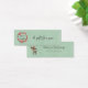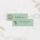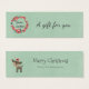 Een netelig visitekaartje dat je kunt gebruiken als een cadeautje label. Plaats op een retro groene achtergrond met een linnetextuur. Een kerst met waterverven. Rode bloemen en groene bladeren in een cirkelvormige vorm, met Seizoenen Greetings in een trendy moderne handgeschreven lettertype. Aan de achterkant van een schattige illustratie van herten met een rode santa-hoed, hipster-stijl, met gepersonaliseerde tekst.