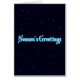 De "Groeten van het seizoen" staat in gloeiend blauw en wit op een stervelachtergrond.
