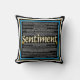 zinnen van sentiment omhelzen deze kussen samen met een vette afbeelding van het woord Sentiment. De achterkant is stevig zwart maar de kleur kan in olijfgroen, wit, blauw of goud worden veranderd om kleurenontwerp te houden.