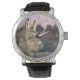 Het originele leuke portret op dit unieke pols met cijfers is een originele potloodtekening van een kleine ezel die ik op een festival fotografeerde. Dit sepia realist afbeelding donkey is gemaakt tegen een oorspronkelijk gestileerd landschapsschilderij. Het oorspronkelijke afbeelding van het landschap is een schilderij van een waterverf van een paar winterbomen tegen een roze zonnehemel. Dit is een aanpasbaar horloge, u kunt het met uw eigen tekst personaliseren.