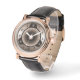 © Sunny Mars Design. Jet Engine Aviation polshorloge - Kwaliteit aanpasbare luchtvaart lederen band polshorloge met een afbeelding van een sepia zilveren stalen straalmotor. Perfecte gift voor professionele of commerciële piloten, zij die privé charterdiensten, het personeel van het opleidingscentrum van de vlucht of om het even welk vlieger, werktuigbouwkundige of bedrijf in de luchtvaartindustrie verlenen.
