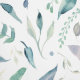Dit is een naadloze waterverf print op een witte achtergrond. Het ontwerp is gerangschikt geassorteerde vorm bladeren in tinten van blauwgroen, salie, en stoffige lavendel, pastel.