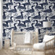 Serene Loon Patroon Blauw en Wit Natuur Ontwerp Behang