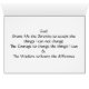 Met een prachtige reproductie van een vreedzame waterverf aan de voorkant en het serenity gebed binnenin, zal deze kaart een welkome gave zijn aan mensen die zich herstellen of alleen maar met dagelijkse stress om te gaan. Geef het geschenk van de vrede.