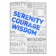 Het blauwe en witte ontwerp (woordcollage) kenmerkt de drie sleutelwoorden van het serenity gebed... serenity moedige wijsheid. De kaart is leeg binnen door gebrek, maar u kunt uw gepersonaliseerde tekst toevoegen. Copyright © Kate McKenna. Alle rechten voorbehouden. Illegaal om zonder toestemming te gebruiken of te dupliceren.