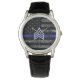 Sergeant Stripes Thin Blue Line Disted Flag Horloge
