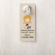 Schoonmaakservice buurtdeurknop adverteren sjabloon met afbeelding van een schoonmaakkarakter en eenvoudige lay-out aan één kant met de mogelijkheid om meer informatie aan de achterkant toe te voegen. Vervang het schoonmaakkarakter door uw eigen bedrijfs-logo of -afbeelding om dit uw eigen te maken om zich te richten op een specifieke buurt die uw services promoot.