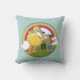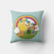 geïnspireerde illustratie van Big Bird, Bert en Ernie in retro kleuren compleet met regenboog tegen een blauwe lucht