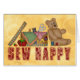 Kleurrijke woordkunst in rood en wit paisleygepatterd materiaal, en een griezelige afbeelding van een schattig beer, zittend met een open mand vol naaigereedschappen. Het perfecte ontwerp voor garnoholics en naaiverslaafden!