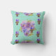 Shabby Chic Aqua Stripe Pansy Floral bloemen Cushion. Ontworpen uit mijn eigen kunst, romantische waterverf schilderijen.