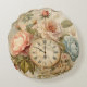 Ons prachtige ronde kussenkussen heeft blush en blauw Franse rozen die een antiek klok omringen, dit kussen voegt moeiteloos een vleugje armoedige chique elegantie toe aan elke ruimte. Vervaardigd met aandacht voor detail, straalt het tijdloze aantrekkingskracht uit, ideaal voor degenen die een geïnspireerd decor aanbidden.