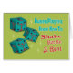 Dit leuke, door Bunco geïnspireerde ontwerp is geweldig voor je volgende Bunco-evenement. De achtergrondkleur kan worden gewijzigd. Er zitten drie dobbelstenen met een martinibril op. "Bunco Players weten hoe te om te schudden, Rattle en Roll maken een groot geschenk of een prijs.