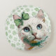 Een charmante witte kat met opvallende blauwe ogen, versierd met een feestelijke klaverblauwe strik. Perfect voor St. Patrick's Day-feesten of iedereen die van katten en op Ieren geïnspireerde design houdt!