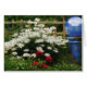 Een grote groep vrolijke Shasta Daisies bloeit in onze tuin in New Hampshire.