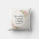 She is Clothed in Strength and Dignity Christian Floral Throw Pillow, with Proverbs 31:25. Featuring soft watercolor florals and delicate greenery, this design beautifully reflects confidence rooted in faith.