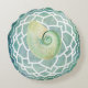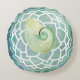 Een gedetailleerde nautilus-schaal bevindt zich in het midden van een ingewikkelde, witte geometrische mandala, tegen een getextureerde blauwgroene achtergrond. De delicate patronen en tinten creëer geven een gevoel van balans en harmonie.