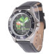 Maak je klaar om Saint Patrick's Day in stijl te vieren met dit hilarische horloge! Met een charmante handgetekende illustratie van een vreugdevolle kabouter die een pint bier voor een gigantische klaverblad draagt, zal dit horloge zeker de feestelijke geest verspreiden. De speelse boodschap "Let the Shenanigans Begin" is geschreven in verbluffende groen-witte kalligrafische typografieën, waarin al je vrienden worden uitgenodigd om deel te nemen aan de viering. De uren zijn gemarkeerd met witte cijfers. Dit feestelijke en grappige glas is een must-have voor een onvergetelijke Saint Patrick’s Day! 🍀🍻