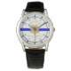 Voeg naam datum, jaren in dienst toe aan dit dunne blauwe lijn, gouden sheriff embleem thema herdenking horloge. Ideaal voor jubileum, pensioen, of een andere gelegenheid naar keuze.