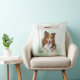 Add cozy charm to your home with this Shetland Sheepdog throw pillow featuring a watercolor design and customizable name flag. Ideal for breed lovers.