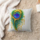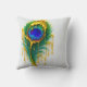 Shimmer Gold Drip Beauty Glam Peacock Feather Pillow.