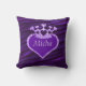Shimmery Creased Paars Satin Crown Monogram Kussen