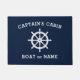Aangepaste Captain's Cabin en Bootnaam met Ships Helm - Wheel and Stars Gepersonaliseerde Zee Blauw en Witte Deurmat.