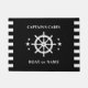 Aangepaste Captain's Cabin en Bootnaam met Ships Helm - Wiel en Sterren Gepersonaliseerde Zwart-wit Deurmat.