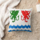 "Argent, twee draken toegevoegd, de dexter vert en de sinistergol, een basis gegraveerd barry azure en argent." Populace badge for the Shire of Dragons Bay in the Society for Creative Anachronism. Achterzijde van kussen is een alloverpatroon in coördinerende kleuren.