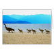 Canada Gese goslings worden begeleid langs de kustlijn van het meer van Pend Oreille in het noorden van Idaho door een volwassene. Dit is een typische scène in het park City Beach in Sandpoint.