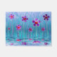 Een digitale tekening van schattige, gestileerde paarse bloemen met het schijnen van rode centra. Ze peeren op je uit het hoge gras met een pool van helder rimpelwater.