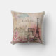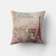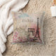 Parijse ontwerp met Paris, de Eiffeltoren, Arc De Triomphe, en bloemetjes in een zoete roze en blauw waterverf efemera achtergrond. Pas de woorden "PARIS" aan en vervang deze door uw favoriete offerte. Verbeter je leefruimte met dit mooie kussen. Past op Parijse shabby chique Victoriaans home decor.