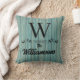 Op deze stijlvolle pluche kussen set zijn blauwgroen blauw rustieke houten planken met een letter en familienaam die u kunt aanpassen waardoor het uniek uw eigen. Rustieke boerderij vibes.