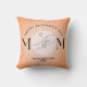 Dit kussenontwerp is een hartverwarmend eerbetoon voor Moederdag, waarbij eenvoud wordt gecombineerd met emotionele diepte. De zachte perzikkleurige achtergrond zet een kalmerende toon, terwijl het grote woord "MOM" creatief is vormgegeven - met een illustratie van de handen van een moeder en baby die elkaar zachtjes vasthouden in plaats van de "O", ingesloten in een lichtroze cirkel met een klein hart erboven, symboliserend liefde en verbondenheid. Boven, de uitdrukking "Happy Mother's Day" boog sierlijk, en hieronder, de boodschap "Aan de beste moeder ooit".