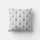 Gooi kussen wordt getoond in een marine en witte kleur met een ankerprint. Achterzijde is een marineblauwe kleur. Pas dit object aan of koop het object zoals het is.