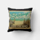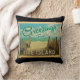 Deze Greetings From Fire Island briefkaart design heeft een zandstrand met een prachtig turkooiswater en boven het zee, een blauwe hemel met blauw witte wolken. In de klassieke reisstijl.