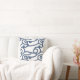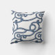Dit werpen kussen eigenschappen een geïllustreerd, stromend herhalend abstract lijnpatroon. De kleuren zijn tinten blauw. Ideaal voor beachy-, kust- of nautische themdecor.