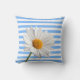 Sierkussen Blue en White Stripe White Daisy